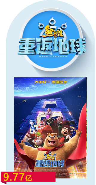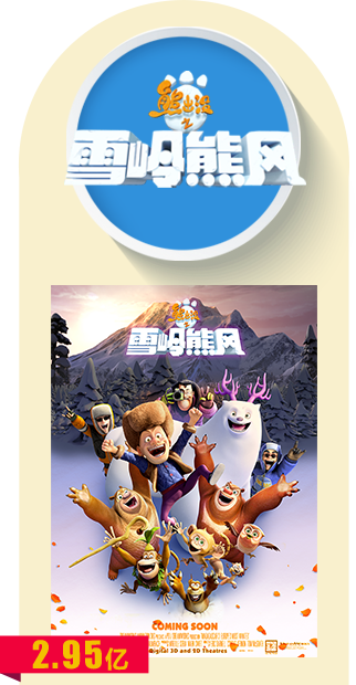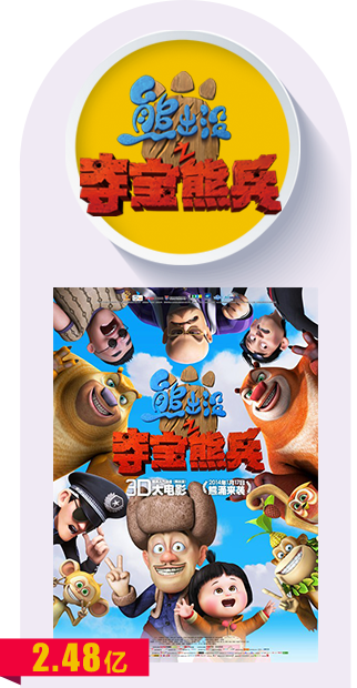 列中國(guó)動(dòng)漫指數(shù)榜首位。原創(chuàng)出品9部《熊出沒》系列動(dòng)畫電影,國(guó)內(nèi)上映總票房超57億,成為