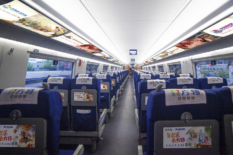 此外,“方特號”高鐵列車均充滿方特元素。不僅列車的車身有著醒目的方特品牌涂裝,列車內的座椅枕巾、創意海報、車窗透明貼、行李架彩貼乃至車內廣播,都體現鮮明的方特主題。乘客還可通過車廂內提供的二維碼信息下載方特旅游APP,提前掌握園區動態和配套的餐飲、住宿、購物等信息;借助APP,乘客還可完成提前購票并規劃游玩路線等。華強方特有關負責人表示:“今年我們冠名的多條高鐵線路,將串聯起方特已落子布局的十余座城市,形成區域聯動;我們希望能讓方特品牌更近距離接觸各地乘客,并將更多的歡樂帶給大家,也歡迎游客朋友們乘坐高鐵來沿線的方特主題樂園體驗游玩。”